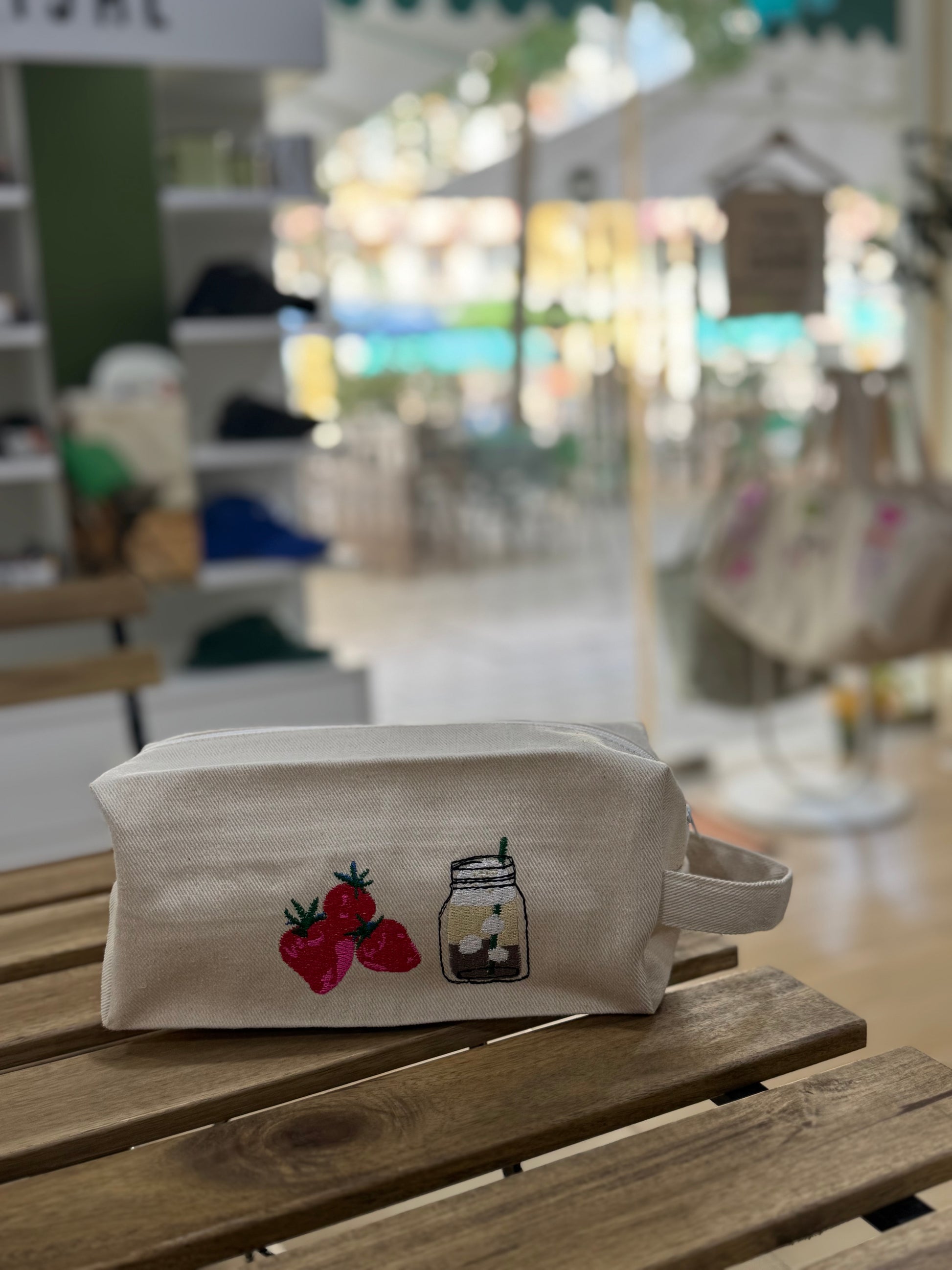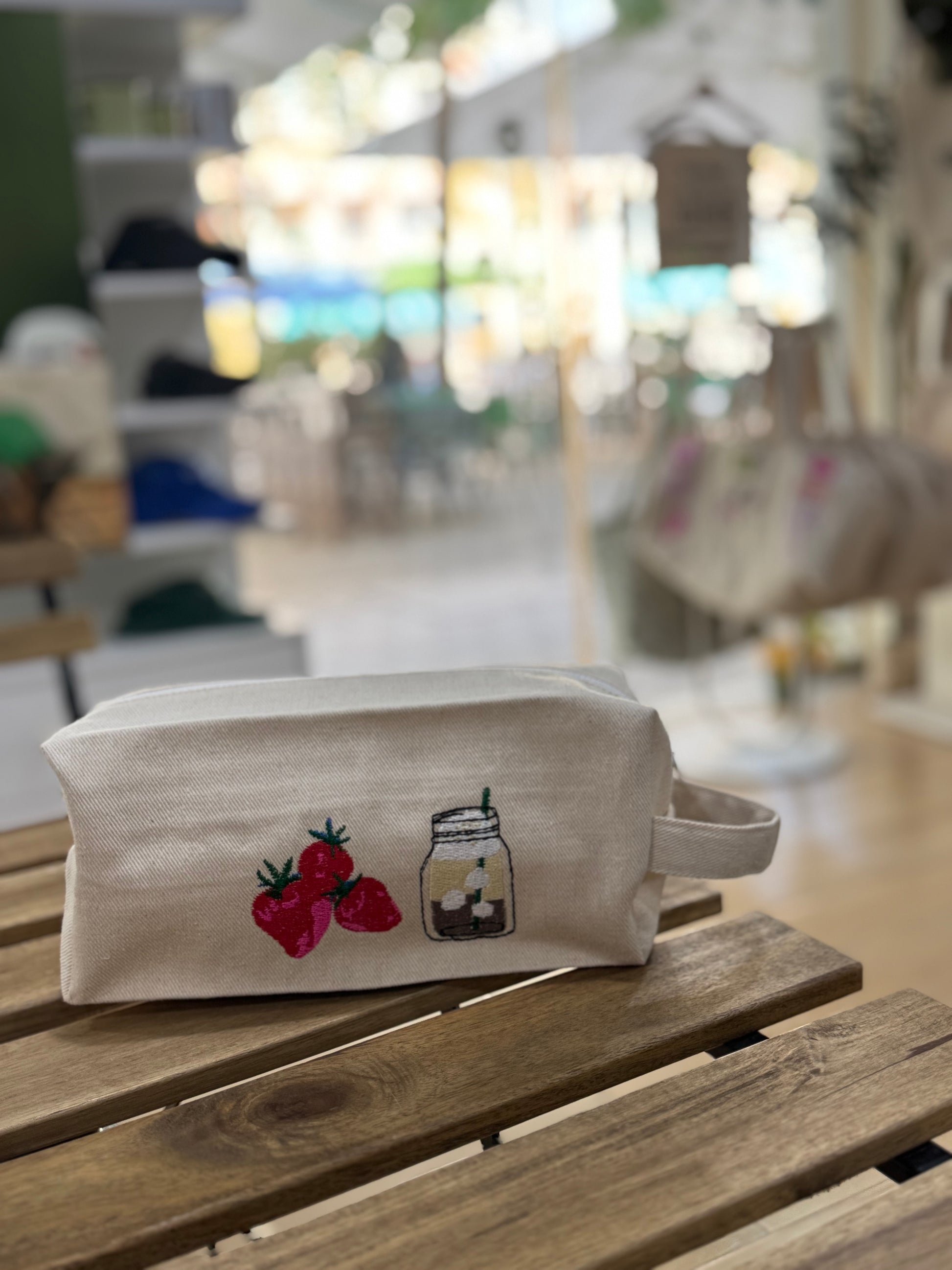 Our  embroidered pouch is here to keep your beauty picks, travel must-haves, and little secrets safe ✨